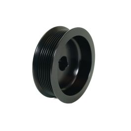 OFFSET: The hub on an offset pulley extends past one shoulder, to position the belt farther away from the supercharger.